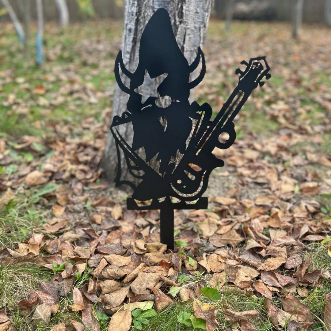 Decoratiune gradina / ghiveci Krodesign Kiss Rock Gnome KRO-1137, metal, inaltime 62 cm