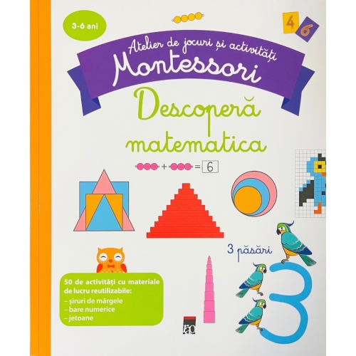 Copilul dumneavoastra va fi initiat in tainele matematicii cu acest caiet Montessori si cu materialele adaptate din el.