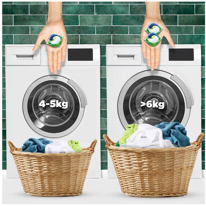 - 4-5 kg – o capsula Ariel Allin1 PODS;