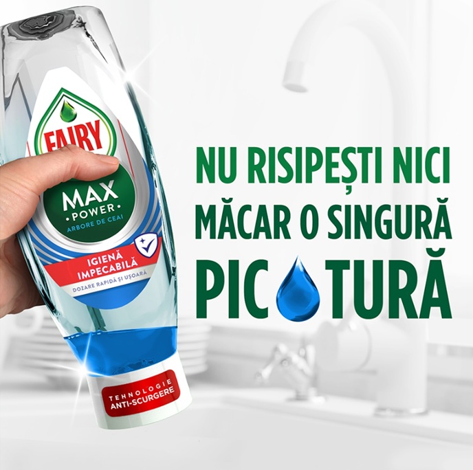 FAIRY Max Power 730 ml Eucalipt este alegerea ideală pentru vase impecabile, prospețime naturală și eficiență maximă la fiecare utilizare.