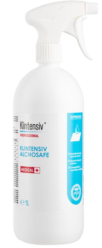 KLINTENSIV ALCHOSAFE este utilizat pentru dezinfectarea prin pulverizare și ștergere a suprafețelor din unități sanitare, laboratoare medicale, cabinete stomatologice (inclusiv amprente dentare din diferite tipuri de materiale, fără a le modifica forma și structura), precum și a suprafețelor dure în industria farmaceutică și cosmetică, din instituții publice și private sau a celor din domeniul casnic. Formula eficientă pe un spectru larg de microorganisme este indicată pentru zonele cu risc mare de contaminare.