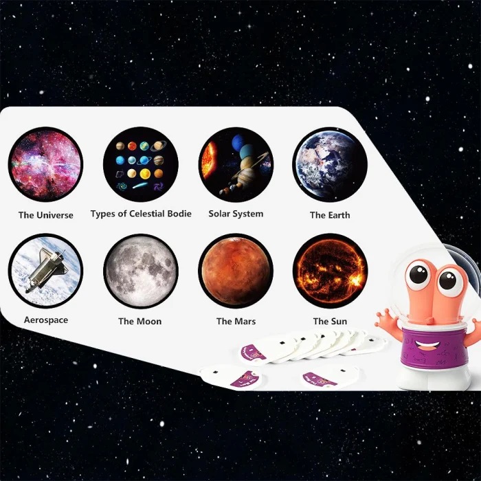 Canbie zzzMoon contine 8 diapozitive cu teme despre spatiu. Acestea includ imagini proiectate pe perete alaturi de explicatii audio pentru fiecare dintre acestea. Pachetul contine o figurina de atasat la Proiectorul zzzMoon si 8 diapozitive, fiecare cu cate o tema.