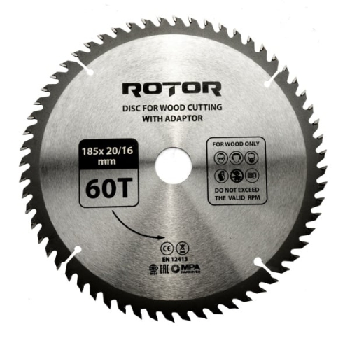 Disc taiat lemn ROTOR 185*20/16 cu adaptor 60T