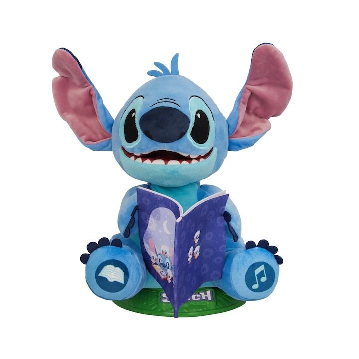 Personajul tau preferat de la Disney, Stitch, vrea sa-ti spuna o multime de povesti si sa-ti redea cantecele sale populare! Stitch Storyteller are 2 moduri de joc: povesti si cantece. El canta pana la 4 cantece diferite sau iti poate spune 4 povesti diferite, toate despre el si prietenii sai! Poti activa si modul Lumina de Noapte, astfel burtica ii va straluci atunci cand spune povesti sau canta! isi misca corpul si gura in timp ce vorbeste sau canta, este atat de distractiv sa-l vezi miscandu-se!