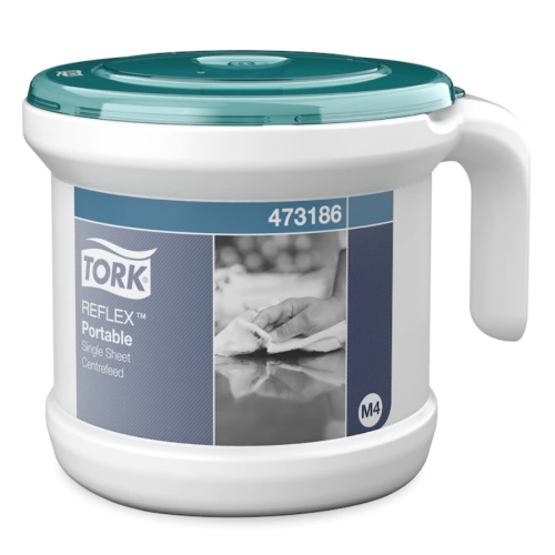 Sistemul portabil Reflex de la Tork cu dozare bucată cu bucată este soluția ideală pentru ștergerea mâinilor și a suprafețelor, în medii profesionale, în mișcare. Acest sistem ușor de utilizat, igienic și durabil reduce consumul cu până la 37%. Ideal pentru industria ospitalității, serviciile de curățenie și alte medii mobile. Mânerul rezistent ajută la transportarea cu ușurință sau la atașarea la un cărucior de curățare, astfel încât hârtia să fie disponibilă tot timpul.