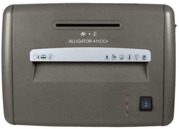 Seria Alligator, dezvoltată pentru birouri mici și mari, a fost dotată cu un design modern și tehnologie de vârf. Alligator 411 CC este destinat utilizării de către 1-5 persoane la birou. Tocatorul de documente distruge până la 11 coli cu un gramaj de 80 g/m², capsate sau nu. Hârtia mărunțită este tăiată în particule mici de 4 x 50 mm. Timpul maxim de funcționare continuă este de 10 minute. După aceea, trebuie să se răcească timp de 15 de minute. Este foarte silețios în timpul activității sale. Ne referim la funcționarea sa cu zgomot redus ca tehnologie Wisper. Nivelul de zgomot este de maximum 58 dB. Capacitatea coșului este de 22 de litri. Coșul este iluminat, astfel încât să puteți vedea întotdeauna când coșul de gunoi este plin.