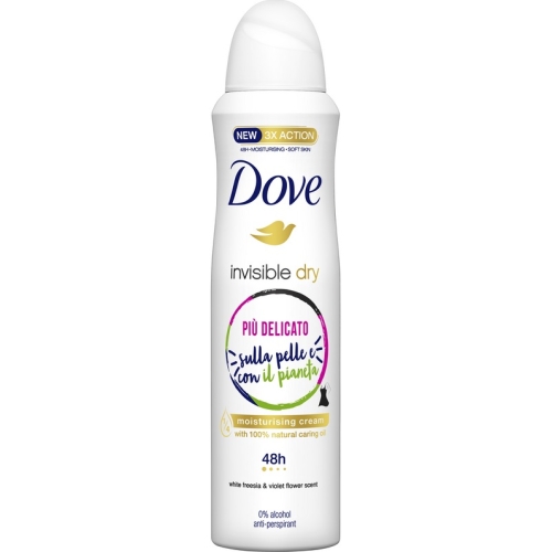 Antiperspirantul spray Dove Invisible Dry contine formula cu ¼ crema hidratanta si vitamina E, pentru o ingrijire