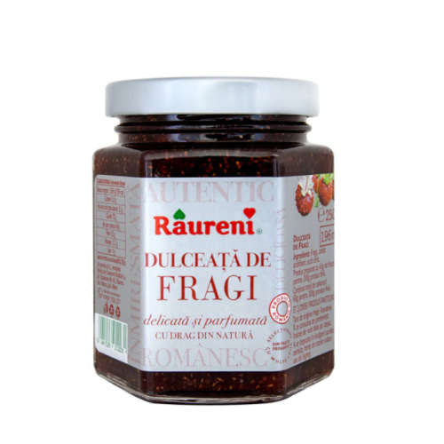 Una dintre cele mai fine dulceturi, aceasta dulceata de fragi Raureni este pregatita cu grija de specialisti, din fragi proaspeti, culesi in zona montana la sfarsit de iunie - inceput de iulie.