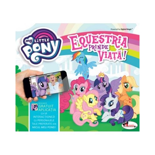 Bine ai venit pe taramul magic al Equestriei! Prietenii ponei din Ponyville abia asteapta sa te cunoasca. Din aceasta carte-ghid interactiv vei afla totul despre cele 6 prietene cu coama si aventurile lor. 9 animatii interactive pe care sa le aduci in casa ta! Tot ce ai de facut este sa scanezi pictogramele si sa privesti cum poneii apar pe ecranul mobilului tau/tabletei tale asa cum nu i-ai mai vazut niciodata pana acum.