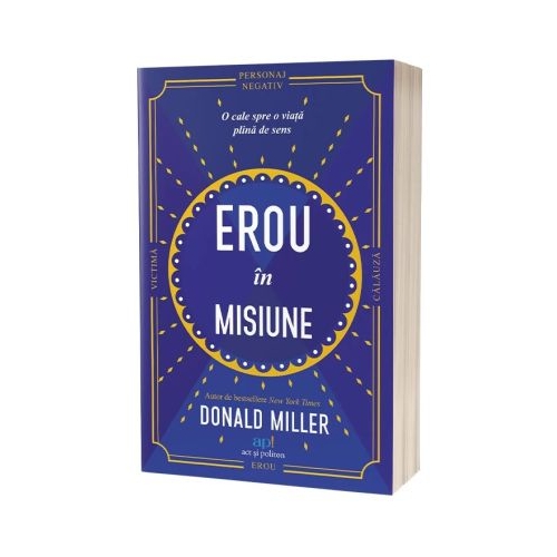 Erou in misiune O cale spre o viata plina de sens Hero on a Mission A Path to a Meaningful Life de Donald Miller este despre cum putem trai o viata plina de sens si despre cum putem gasi un sens vietii chiar si atunci cand pare a nu avea niciunul. Totodata cartea de fata este despre planul pe care l-a folosit autorul de bestsellere Donald Miller pentru a-si schimba viata intr-un moment in care toate ii mergeau prost si despre cum l-a ajutat acesta sa se repuna pe picioare si mai mult decat atat sa traiasca viata la care a visat dintotdeauna. La 26 de ani Donald Miller era supraponderal traia de azi pe maine se chinuia sa isi plateasca chiria de la o luna la alta si nici nu se punea problema sa aiba o iubita. Cand a realizat unde gresea s-a reinventat complet cu ajutorul planului descris in aceasta carte reusind sa debuteze ca scriitor si sa publice mai multe carti sa isi gaseasca o iubita care i-a devenit mai tarziu sotie si cu care are actualmente un copil si sa se mute in casa visurilor sale impreuna cu familia lui. Si acesta a fost doar inceputul unei vieti pline de realizari si impliniri Donald Miller este CEO-ul companiilor StoryBrand si Business Made Simple gazda canalului de YouTube Coach Builder si autorul a zece carti printre care se numara Creeaza un Storybrand Marketingul simplificat si Afacerile simplificate toate trei aparute la Editura ap Donald Miller este si gazda podcastului Business Made Simple unde ii indruma pe antreprenori sa isi construiasca afacerea ca pe un avion. In aceasta ordine de idei cockpitul este conducerea afacerii corpul este reprezentat de cheltuielile generale motorul din dreapta este marketingul motorul din stanga sunt vanzarile aripile sunt produsele iar rezervoarele de combustibil sunt fluxul de numerar. Potrivit autorului daca cele sase parti ale afacerii sunt construite corect afacerea va zbura departe si repede ca un avion. Donald Miller locuieste impreuna cu sotia lui Betsy si cu fiica lor Emmeline in Nashville Tennessee. Deci cum putem trai o viata cu sens Reiau in primul rand precizam ce ambitie avem. In primul rand ne decidem in ce fel ne dorim sa contribuim in lume sau ne alaturam unei comunitati ori unei miscari care aduce o contributie in lume. In al doilea rand traim experienta cu ceilalti si ne dam voie sa devenim din ce in ce mai interesati de alti oameni si de frumusetea exterioara. In al treilea rand acceptam ca provocarile si chiar si tragediile sunt o realitate. Desigur incercam sa le prevenim dar nu ne plangem de mila atunci cand se intampla. Provocarile sunt dureroase dar pot servi unui scop daca le permitem. Donald Miller Erou in misiune In orice poveste exista patru personaje victima personajul negativ eroul si calauza. Toate aceste personaje se afla concomitent in fiecare dintre noi. Daca alegem sa jucam rolul victimei vom fi sortiti esecului. Daca vom alege sa jucam rolul personajului negativ nu vom reusi sa cladim relatii autentice. Insa daca vom alege sa jucam rolul eroului sau al calauzei viata noastra va fi infloritoare. Partea cea mai dificila este sa ne dam seama ce personaj vrem sa intruchipam. Victima nu are niciun plan in schimb asteapta un salvator. Personajul negativ are un plan de distrugere si pune la cale erse modalitati prin care sa se razbune pe lumea care l-a facut sa sufere. Eroul creeaza un plan care este avantajos pentru toata lumea si apoi il respecta. Calauza a trait o viata buna dar se intoarce pentru a-l ajuta pe erou sa-si gaseasca si sa-si traiasca propria poveste plina de sens. Donald Miller Erou in misiune Donald Miller se foloseste de propria lui experienta de viata pentru a va ajuta sa va dati seama daca personajul pe care il intruchipati in momentul de fata va ajuta sa traiti o viata implinita sau dimpotriva va trage in jos spre o viata plina de suferinta nemultumire si insatisfactie. Planul cu ajutorul caruia a reusit el sa inlocuiasca mentalitatea de victima cu cea de invingator va va ajuta si pe voi sa faceti acelasi lucru. Lectiile din aceasta carte va vor arata astfel Sa va dati seama cand jucati rolul victimei sau al personajului negativ Sa creati un plan de viata simplu care va conferi mai multa claritate si sens obiectivelor voastre viitoare. Sa preluati controlul asupra vietii voastre alegand sa fiti eroul pozitiv in propria voastra poveste Sa dati dovada de mai multa creativitate atunci cand va imaginati cum ar putea fi viata voastra Sa vedeti dincolo de simpla productivitate pentru a constientiza sensul mai profund al existentei voastre. Donald Miller va va ajuta sa identificati numeroasele sanse pe care le aveti de a fi eroul in viata voastra dar si momentele in care aveti tendinta sa renuntati si sa cadeti in capcana de a deveni o victima. El va va ghida sa va puneti la punct un plan unic cu ajutorul caruia veti putea depasi provocarile cu care va confruntati in prezent astfel incat sa va puteti bucura de implinirea si fericirea de care aveti nevoie in viata si in munca voastra. Cartea este impartita in 3 acte ultimul urmand a fi scris chiar de voi. Iata asadar despre ce este vorba in cele doua acte scrise de autor ACTUL 1 Cum sa creezi o viata plina de sens Dupa cum spuneam mai devreme in orice poveste exista patru personaje importante victima personajul negativ eroul si calauza. Cand eroul povestii se comporta ca o victima povestea este compromisa. La fel se intampla si in viata. Cand alegi sa te comporti ca o victima si nu accepti provocari si nici nu iti propui obiective greu de atins care iti pot aduce satisfactii risti sa te complaci intr-o existenta mediocra lipsita de realizari. La fel se intampla si in cazul in care decizi sa joci in povestea ta rolul personajului negativ. Alegand in schimb sa fii eroul sau calauza deschizi usa unor nenumarate posibilitati. De aceea Donald Miller ne arata in aceasta carte calea de urmat pentru a deveni eroi sau calauze evitand cu orice pret sa cadem in capcana victimei sau a eroului negativ. Autorul ne povesteste in aceasta sectiune propria 