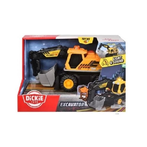 Escavator Dickie cu sunet si lumini cu functie manuala de sapare lungime 16 cm. Excavatoarele sunt printre cele mai populare vehicule de constructie de jucarie. Are un design gri si galben cu rulare libera si are de asemenea efecte de lumina si sunet cool. Conceput pentru copiii cu varsta de 3 ani si peste bratul excavatorului si lopata pot fi usor miscate de maini neexperimentate. Bateriile sunt incluse in set astfel incat micutul tau poate incepe sa sape imediat