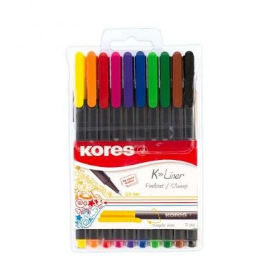 Fineliner Kores K-Liner 0. 4mm, 10 culori in etui plastic, asortate (KS28110)