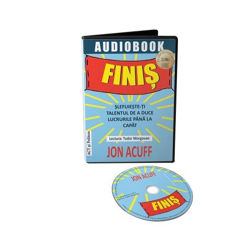 Finis Slefuieste-ti talentul de a duce lucrurile pana la capat Finish Give Yourself the Gift of Done de Jon Acuff este audiobookul pe care trebuie neaparat sa il asculti daca iti doresti sa faci mai mult sa iti propui mai mult si sa realizezi ceea ce ti-ai propus fara a-ti gasi scuze pe parcurs care sa te faca sa te opresti la jumatatea drumului sau chiar mai devreme. Cu alte cuvinte Finis un audiobook pentru toti cei care nu mai vor sa renunte la visurile lor si pentru toti cei care sunt pregatiti sa isi faca lor insisi o promisiune si anume aceea de a merge intotdeauna pana la capat. Finis este un audiobook care te va convinge ca perseverenta este calea pe care trebuie sa o urmezi si nu perfectionismul. Dincolo de faptul ca este un tip foarte simpatic lucru care reiese din modul in care isi scrie cartile Jon Acuff este si un scriitor foarte apreciat fiind autorul a sase bestselleruri New York Times. Finis este unul dintre acestea ajungand totodata si bestseller No. 1 in topul Wall Street Journal. Jon Acuff a fost consilier timp de mai bine de 20 de ani pentru unele dintre cele mai mari branduri din lume ajutandu-le sa isi spuna povestea. In ultimii ani s-a orientat mai mult spre cariera de speaker conferintele sale tinandu-se in cele mai variate locuri de la colegii si companii pana la biserici.