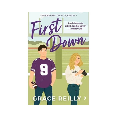 Bestseller USA Today Amazon BestOfBooktok Bine ai venit la Universitatea McKee in aceasta picanta poveste de dragoste sportiva prima din seria de senzatie BookTok Beyond the Play. Pregatirea noului fundas in schimbul catorva intalniri false nu va duce la nimic mai mult... nu-i asa James Fotbalul este totul pentru mine. Traiesc mananc si respir pentru acest sport. Dar cand ma transfer la Universitatea McKee pentru a scapa de distractiile care aproape ca m-au costat viitorul in NFL ma confrunt cu o alta consecinta trebuie sa reiau cursul de scriere pe care l-am picat la ultima mea facultate sau voi pierde orice sansa de a ajunge o vedeta a fotbalului. Aici intervine colega de an Beckett Wood - superba incapatanata si exact genul meu. Ea este cheia succesului meu la acest curs... dar pretul ajutorului pe care mi-l ofera este o relatie de fatada iar eu nu fac niciodata lucrurile pe jumatate. Bex Nu ma incurc niciodata cu sportivii iar la prima vedere chipesul si arogantul James Callahan nu face exceptie. Vrea sa-l ajut sa ia cursul de scriere pe care amandoi suntem obligati sa-l urmam dar eu sunt prea ocupata ca sa-mi asum inca o responsabilitate. Dar cand colegul lui de echipa - fostul meu infidel - nu ma lasa in pace imi dau seama ca trebuie sa-l conving ca am trecut peste relatie... si ce modalitate ar fi mai buna decat sa pretind ca sunt cu James care nu vrea sa aiba de-a face cu o relatie adevarata Cu fiecare sarut fals James ma trage mai adanc intr-o relatie care ma emotioneaza si ma ingrozeste. De ce ma face sa ma simt vie asa cum nu m-a facut nimeni altcineva Si de ce nu vreau sa se termine Cand mi-e pofta de o poveste de dragoste cu sportivi plina de glume spumoase cu o tensiune delicioasa si vorbe murdare care topesc paginile apelez de fiecare data la seria Beyond the Play a lui Grace Reilly. - Stephanie Archer autoarea seriei bestseller Vancouver Storm Plina de emotii picanterii sport si noul tau crush din carti First Down este o poveste de dragoste spicy care nu trebuie ratata