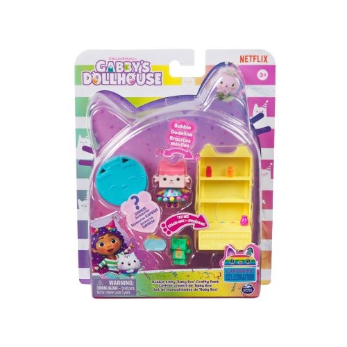 Faceti echipa cu Baby Box Cat pentru aventuri captivante in casuta de papusi. Baby Box este imbracata in tinuta ei semnatura Gabby&rsquos Dollhouse si vine cu micul ei robot artizanal si distribuitorul ei de banda pentru pisicute! Setul include, de asemenea, un raft de artizanat cu o activare ascunsa, astfel incat sa puteti apasa sticla pentru a face sa apara alte borcane pe raft! Apoi, asa cum face Gabby in fiecare episod, despacheteaza o casa de papusi pentru a descoperi o jucarie surpriza o pereche de ochelari de protectie pe care sa o poarte Baby Box! Toate jucariile Gabby's Dollhouse sunt proiectate sa se integreze una cu cealalta, asa ca, pentru si mai multe moduri de a juca, cautati Gabby Cat Friend Ship, Gabby's Purrfect Dollhouse si Dollhouse Rooms tematice, pentru a construi si mai mult lumea casei de papusi (fiecare se vinde separat)! Plusurile, animalele de plus, papusile si accesoriile, figurinele de jucarie si seturile de joaca Gabby&rsquos Dollhouse sunt jucariile educationale perfecte pentru fetele si baietii carora le place sa-si foloseasca imaginatia pentru a-si crea propria lume a casutei de papusi, asa ca pregateste-te pentru nesfarsite aventuri de joc de simulare cu pachetul Bobble Kitty Baby Box Crafty!