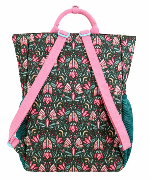 Detalii unice, precum felt dangler-ul, tragatorul de fermoar sub forma de floare si arta captivanta, adauga un stil aparte si o nota fermecatoare acestui rucsac.
