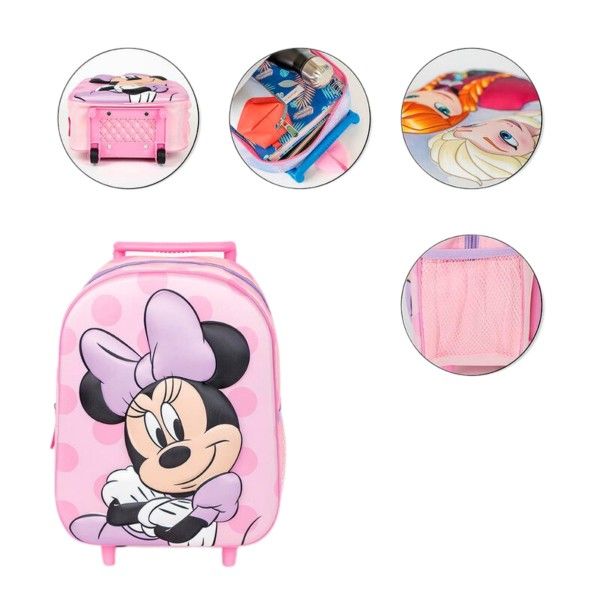 Ghiozdan gradinita Cerda Minnie 3D 37 cm 1 compartiment tip troller roz 37030