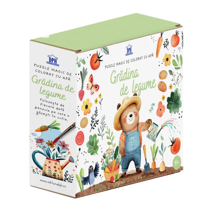 Descopera „Gradina de legume”, un puzzle magic care imbina joaca, creativitatea si fascinatia pentru natura! Copiii reconstruiesc scena cu cele 54 de piese, apoi folosesc pensula inclusa pentru a atinge cu apa zonele illustrate, iar detaliile ascunse prind viata treptat, intr-un mod surprinzator si captivant.