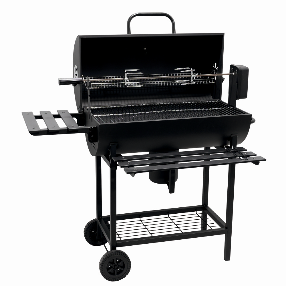 Gratar pe carbuni KLUGMEISTER KY1813D, material otel, cu capac si roti deplasare, cu rotisor, suprafata gatire 71x35 cm