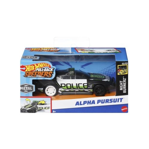 Aceste vehicule din metal Hot Wheels sunt la scara 143, cu decor autentic. Fiecare include o caracteristica interactiva precum Rolomatics, care evidentiaza miscarile motorului, sau usile, capotele sau portbagajul care se deschid. Cu detalii atat de grozave, posibilitatile de joaca sunt nesfarsite pentru copii, iar colectionarii le vor dori pe toate. Fiecare se vinde separat, in functie de disponibilitate. Culorile si decoratiunile pot varia. Acest pachet contine masinuta Police Alpha Pursuit.