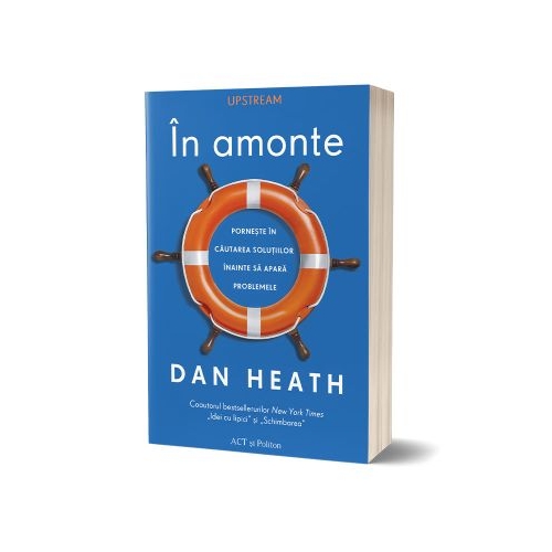 Cartea defineste eforturile in amonte ca fiind acele actiuni pe care le intreprindem cu scopul de a preveni problemele inainte sa apara sau daca preventia esueaza pentru a reduce in mod sistematic raul provocat de acele probleme. Asadar aceasta carte este o pledoarie pentru a schimba lumea prin preventie si nu prin incercari de a repara lucrurile atunci cand de multe ori e prea tarziu. Dan Heath iti ofera in acest sens in volumul de fata o serie de solutii si exemple din care sa te inspiri. De altfel motivul scrierii acestei carti a fost chiar acesta in ciuda faptului ca avem la dispozitie un spectru larg de solutii pentru problemele omenirii in general ne-am restrans la o zona foarte mica zona raspunsului. Reactionam reactionam reactionam. spune Dan Heath in debutul acestei carti. Insa am putea face mai mult decat atat Bineinteles considera autorul. In loc sa reactionam am putea sa actionam inainte de a fi prea tarziu. Am putea face mai mult ca societate in general pentru a preveni abandonul scolar si bolile pentru a preveni agresivitatea in randul copiilor si adolescentilor dar si consumul de droguri pentru a imbunatati sistemul de sanatate pentru a preveni infractiunile accidentele de masina decesele survenite prin inecare in randul copiilor criminalitatea dezastrele naturale poluarea aerului infractiunile cibernetice etc. Iar acestea sunt doar o parte dintre problemele exemplificate in aceasta carte. De aceea daca lucrezi in domeniul sanatatii al educatiei in administratie sau in domeniul ordinii publice daca esti activist de mediu sau un simplu cetatean responsabil aceasta carte iti va furniza niste idei valoroase care cu siguranta te vor determina sa iei initiativa.