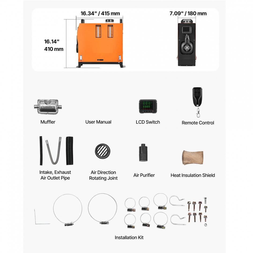 Incalzitor stationar/Sirocou diesel 12-24V DC, 8 KW, Telecomanda, consum 0.18-0.36 l/h, Rezervor 5 l