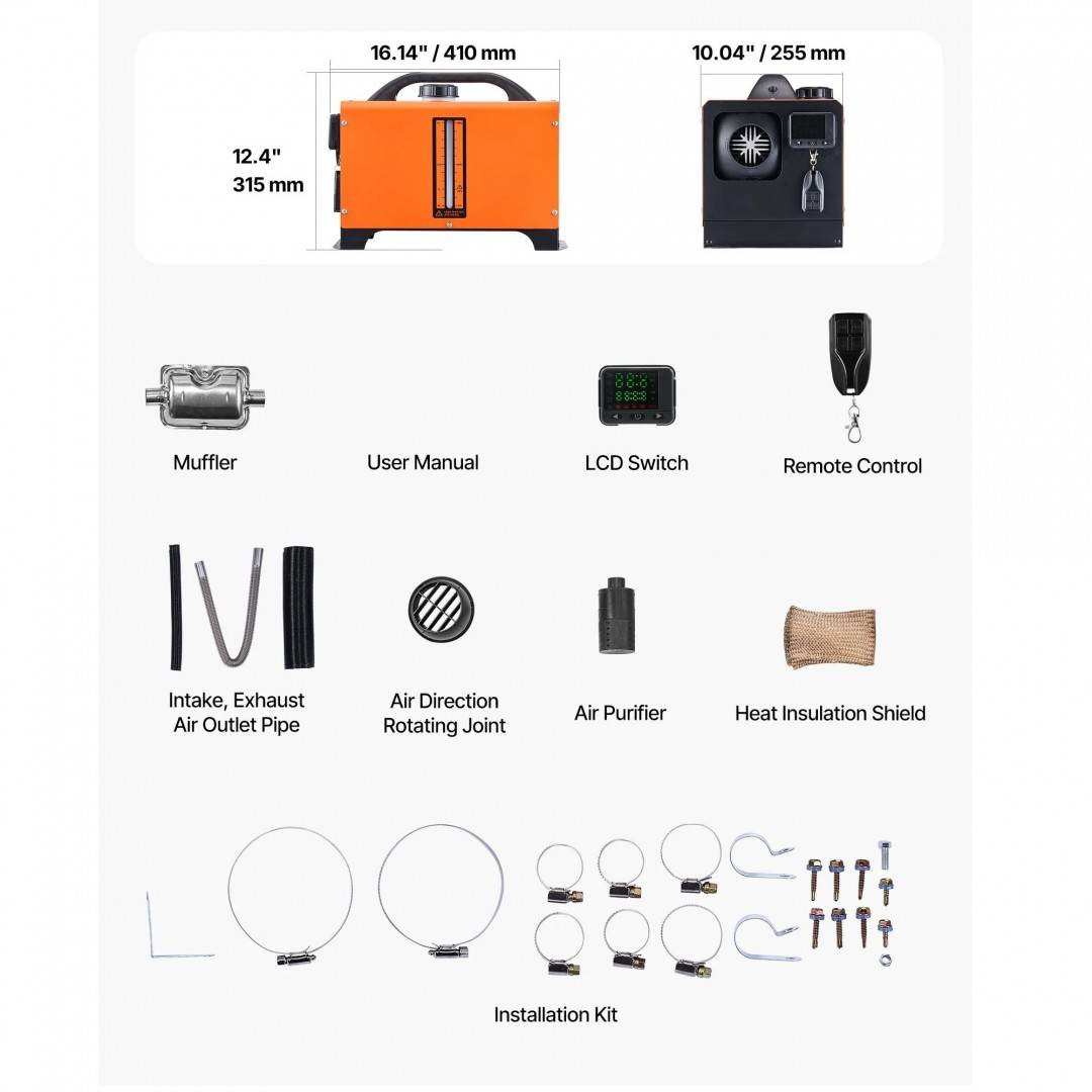 Incalzitor stationar/Sirocou diesel 12-24V DC, 8 KW, Telecomanda, consum 0.18-0.36 l/h, Rezervor 5 l, 410 x 255 x 315 mm