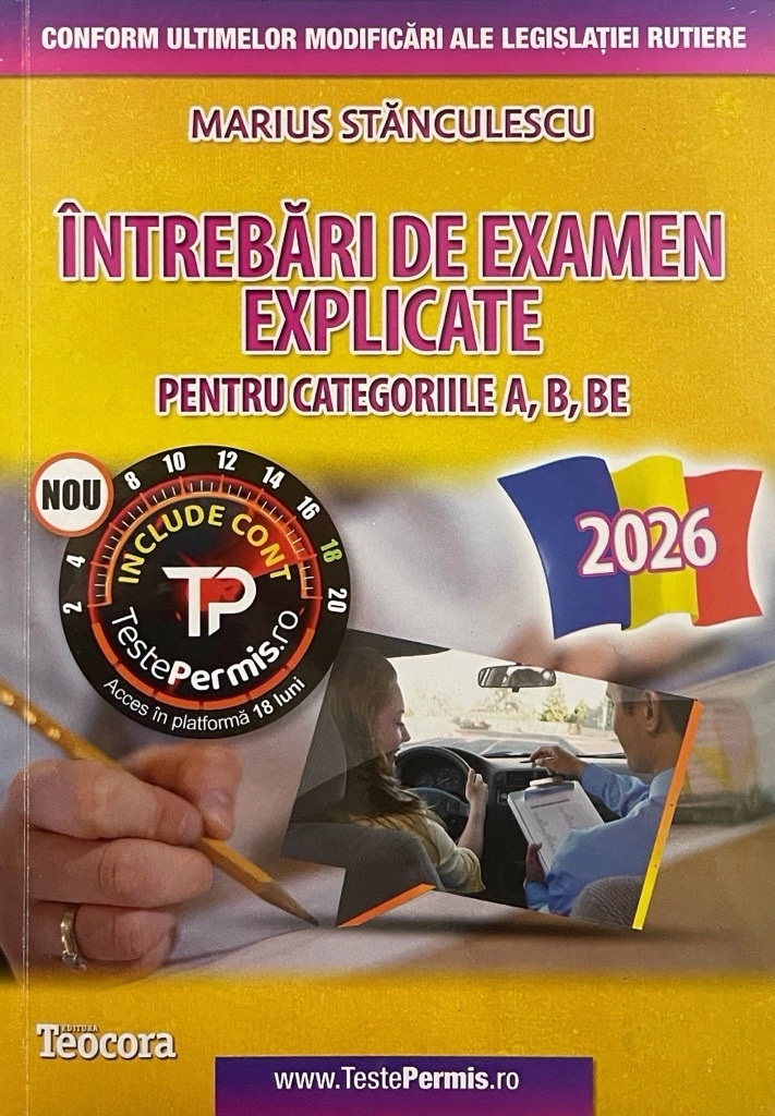 Intrebari de examen auto explicate pentru categoriile A, B, BE -2026 (cod acces online) - Marius Stanculescu