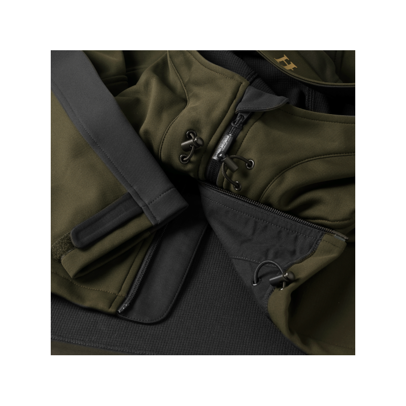 Material principal: 100% Poliester, Softshell full stretch, DWR