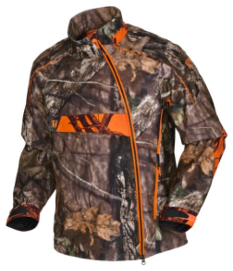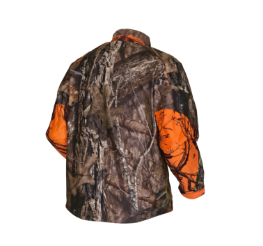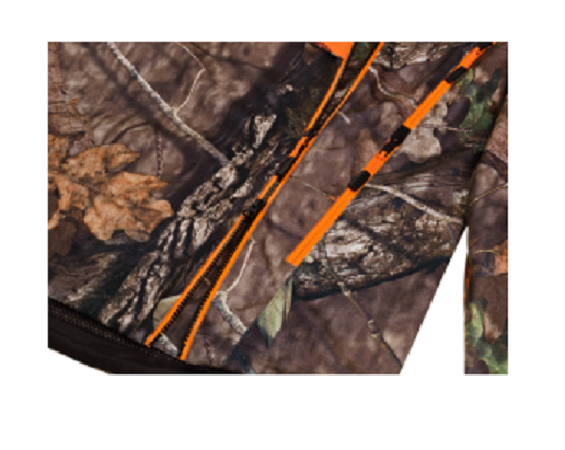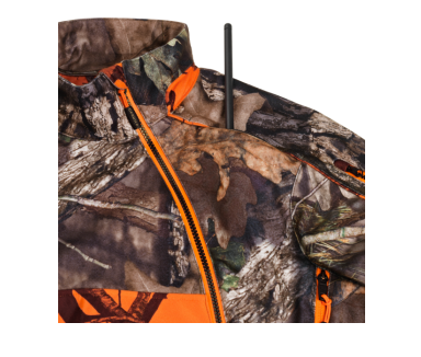 La fel cu celelalte articole din gama Moose Hunter, geaca este confectionata dintr-un mix de camuflaj Mossy Oak® Break-Up Country® si Mossy Oak® Blaze Orange, care ascunde vanatorul de vanat, dar asigura o vizibilitate excelenta pentru ceilalti vanatori.