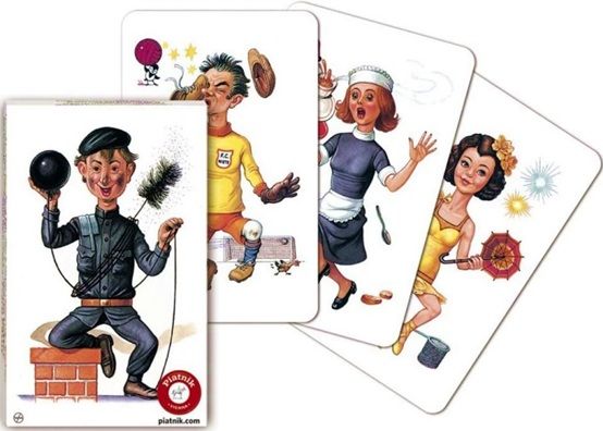 Iata jocul de Pacalici (Black Peter) clasic de la Piatnik! Imaginile personajelor sunt superbe si amuzante, in stil nostalgic, si arata oameni cu ocupatii diverse.