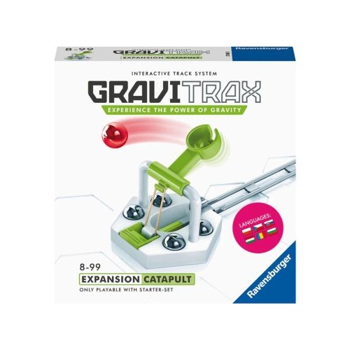 Experimenteaza puterea gravitatiei Cu setul Catapulta poti depasi obstacole serioase. Depaseste pe scurt gravitatia in timp ce sfera zboara prin aer. Va trebui sa va asigurati ca sfera are un loc unde sa aterizeze si sa terminati pista. Poate fi jucat numai impreuna cu setul de baza Gravitrax. Sistemul de pista cu bile Gravitrax este extins la infinit cu accesorii si garanteaza o experienta nelimitata de constructie si joaca. Motivele principale sa alegeti gama Gravitrax INOVATIV Sistemul de pista interactiv Gravitrax va permite sa proiectati sa va construiti propriile piste de curse si sa experimentati gravitatia magnetismul repectiv cinetica. JUCARIE STEM Copii cu varstele de peste 8 ani vor putea experimenta jocuri educationale si stiintifice. COMPATIBIL Extindeti cu usurinta complexitatea jocului - Toate seturile sunt compatibile si functionale. IDEE DE CADOU Gravitrax este un cadou ideal de sarbatori si cu ocazia zilelor de nastere pentru copiii si adultii creativi curiosi carora le place sa construiasca. Contine 1 Catapulta 4 sfere 2 benzi de cauciuc de rezerva 1 regulament in lb. romana. Varsta recomandata 8 ani Nr. jucatori 1