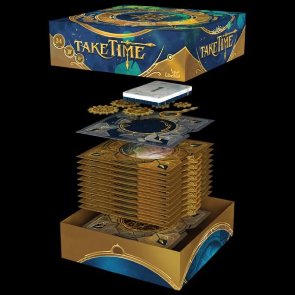 Timpul insusi te provoaca! Intra intr-o aventura inedita alaturi de echipa ta si depasiti impreuna provocarile ceasurilor din diferite universuri – de la Constientizare la Renastere. Fiecare nivel e o noua incercare, o noua oportunitate de a coopera si de a va pune mintile la contributie. In Take Time, castigati sau pierdeti impreuna! Folositi strategic cele 12 carti asezate in jurul unui ceas si respectati regulile speciale ale fiecarei provocari. Fiecare decizie conteaza! Jocul contine 40 de teste cu dificultate crescatoare, fiecare adaugand noi reguli si elemente-surpriza care transforma complet dinamica de joc. Fiecare secunda conteaza in aceasta calatorie colaborativa plina de emotie, strategie si momente memorabile. Bucura-te de fiecare moment al acestei calatorii uimitoare, de la inceput pana la sfarsit!