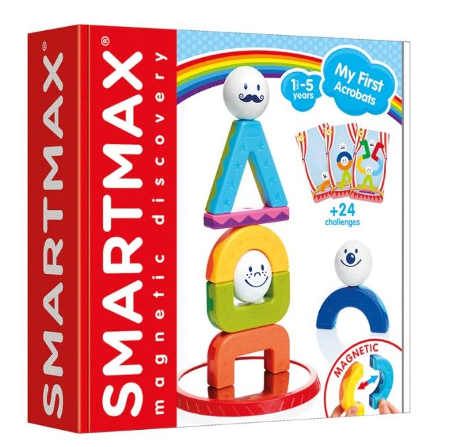 Smart Max, My First Acrobats, Primii mei acrobati este un joc de constructie magnetic, recomandate incepand de la 1 an datorita pieselor mari, stimuleaza si dezvolta coordonarea mana-ochi, gandirea logica, recunoasterea culorilor, recunoasterea formelor 2D si 3D, socializarea prin jocul impreuna, fantezia si creativitatea.