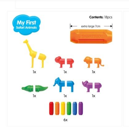 Smart Max, My First Safari Animals, Primele mele animale de safari este un joc de constructie magnetic, recomandate incepand de la 1 an datorita pieselor mari, stimuleaza si dezvolta coordonarea mana-ochi, gandirea logica, recunoasterea culorilor, recunoasterea formelor 2D si 3D, socializarea prin jocul impreuna, fantezia si creativitatea.