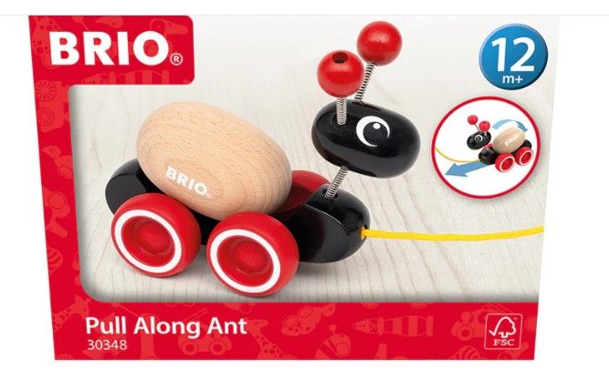 Produsul include o jucarie de tras in forma de furnica, fabricată din lemn de inalta calitate si un ou care ruleaza. Oul se roteste pe spatele furnicii in timp ce o trageti, iar rotile sale rosii stralucitoare functioneaza pe orice suprafata.