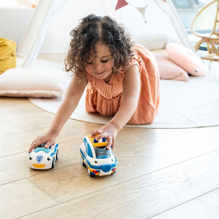 Jucarie pentru copii WOW Toys, Masina de politie – Cop Car Cody este o jucarie interactiva de tip Push & Go, destinata copiilor cu varste intre 1 si 5 ani. Cody este mereu pregatit sa porneasca in urmarirea infractorilor si sa mentina ordinea.