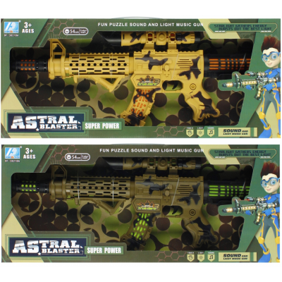 Avantajele produsului: pușca are efecte sonore și luminoase - atunci când apăsați pe trăgaci, puteți auzi sunetul unei împușcături, are efecte de mișcare - vibrații la tragere, este disponibilă în două versiuni de culoare.
