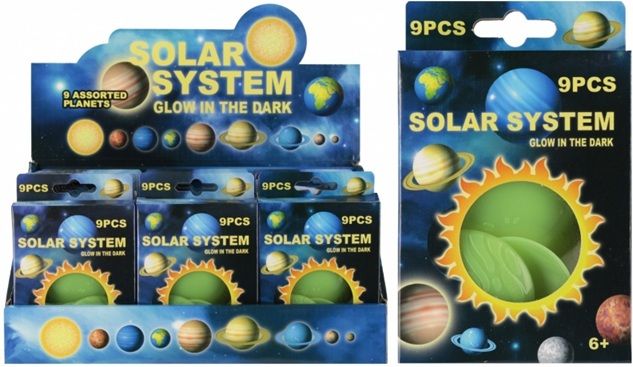 Jucarie set forme planete fosforescente MegaCreative 571410 3-10cm set 9 buc pvc 3 ani