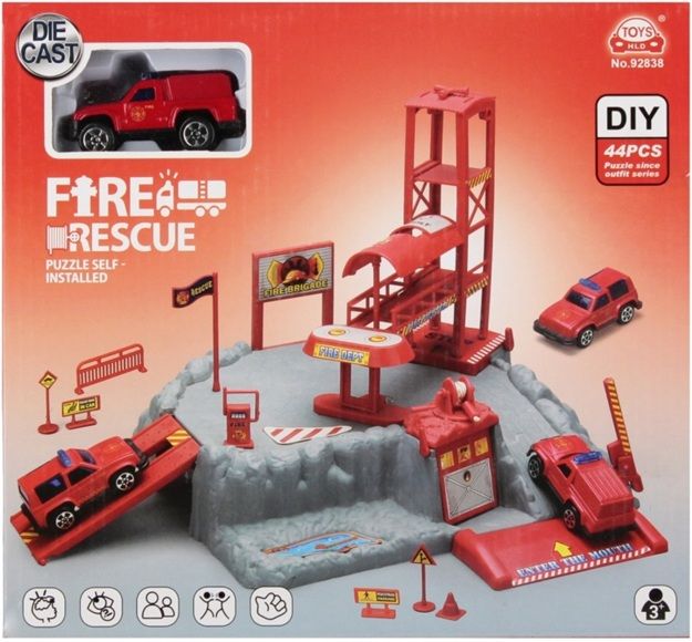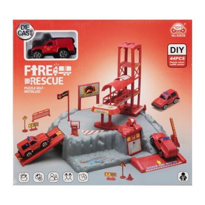 Conținut setului: 1x vehicul de pompieri și componente pentru asamblarea parcării.