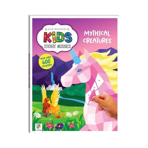 Kids can get truly immersed in the highly imaginative world of fun sticker art with Kaleidoscope Kids Sticker Mosaics Mythical Creatures. This spectacular book designed specifically for kids features eight awesome images with over 600 stickers to fill in the gaps Each page contains an awesome geometric image of everyone s favourite mythical creatures whether it s a dragon fairy mermaid Pegasus phoenix or unicorn It s so easy and satisfying for kids to do they simply peel off the stickers place them in the matching spaces on the page and voila Every kid is on their way to completing an artistic masterpiece. This fun colour-by-sticker format works in a similar way to traditional colouring books using stickers instead of pencils pens or crayons. With 8 pictures to complete this book offers hours of fun for kids to be creative and use their imagination
