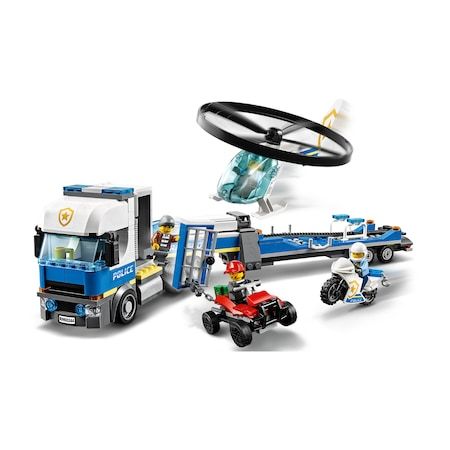 Copiii pot lansa in aer elicopterul cu coarda, nou din ianuarie 2020. Camionul transportor are o cabina detaliata a soferului, o celula de inchisoare mobila, calculator si bariere pentru drum o incantare pentru fanii politiei LEGO City.
