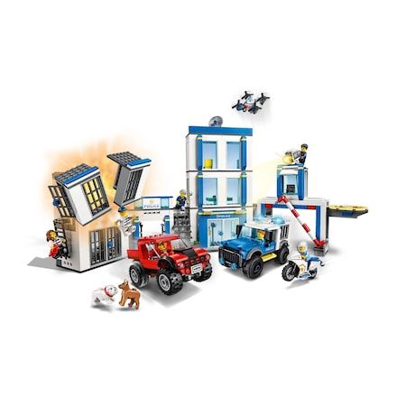 Copiii se vor distra de minune cu statia de politie plina de functii, printre care functia de aruncare in aer a celulei de inchisoare, reflectorul cu caramida luminoasa, plus o masina de politie cu o caramida-sirena care emite lumini si sunete un bonus excelent pentru fanii politiei din LEGO City.