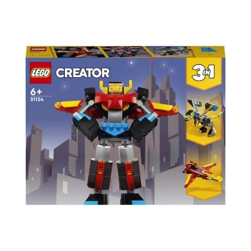 Calatoreste in viitor pentru aventuri uimitoare cu acest Super Robot senzational! El poate proteja orasele cu puterea sa incredibila sau se poate inalta spre cer cu aripile sale. Dupa aceea, reconstruieste robotul ca un dragon pozitionabil, sau avion rapid cu aripi reglabile pentru o actiune si mai fantezista - sau foloseste aceleasi caramizi pentru a crea ceva cu totul nou! Tu alegi, cu acest set minunat 3 in 1.