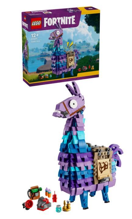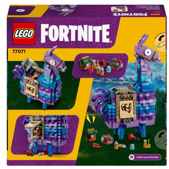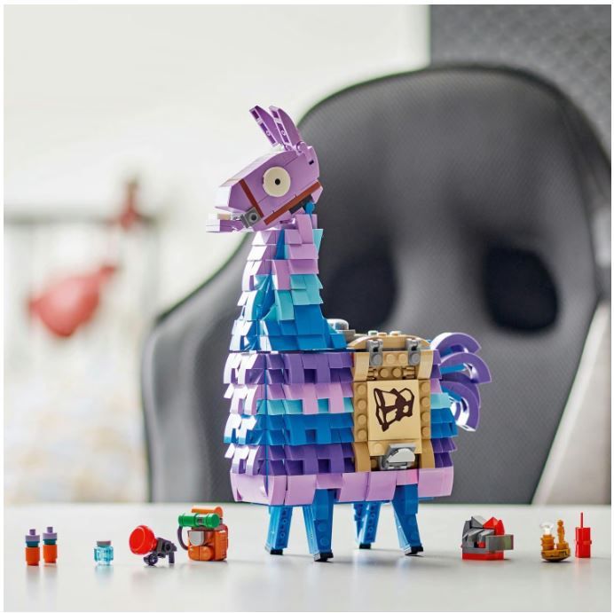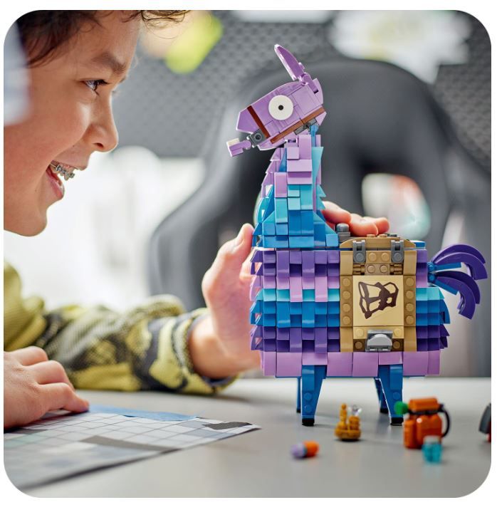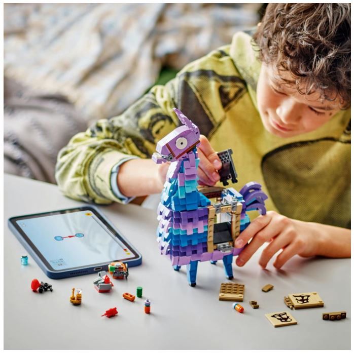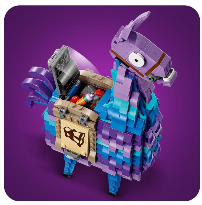 Micii gameri vor petrece ore intregi de distractie asambland piñata in forma de lama Fortnite, cunoscuta sub numele de Supply Llama in jocul video LEGO Fortnite. Plin cu detalii distractive pentru a inspira joaca creativa, modelul are un cap mobil si o gura care se deschide, precum si o sa si multe echipamente cool. Intre acestea se numara Grappler, Slurp Juice, Rough Ruby, Back Pack, Good Luck Charm, Slap Juice si Dynamite. Bazate pe articole fascinante din LEGO Fortnite, aceste obiecte incurajeaza copiii sa recreeze in afara ecranului momentele lor preferate din joc.