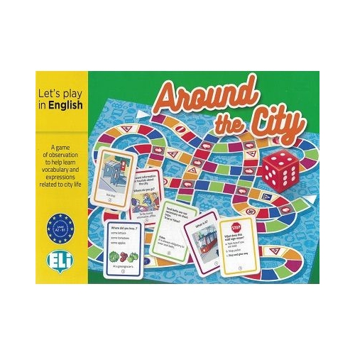 Level A2-B1 Around the City is a board game for students at level A2-B1. At allows students to verify their general linguistic kills whilst learning and revising vocabulary and expressions related to city life shops transport road signs and road safety. The game can be used in class or at home with friends. The game is composed of six thematic packs of 20 cards each a pack of grey of 12 cards with penalties a playing board a dice an instruction booklet.