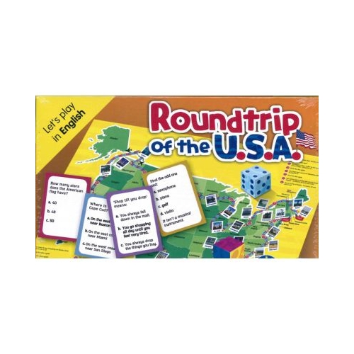 Level A2-B1 RULES OF THE GAME Stars on the back of the cards indicate the different levels at which the game can be played level A2 one star B1 two stars. The teacher or group leader places the material around him including the six packs. The youngest player starts the game by rolling the coloured die and answering the type indicated by the colour shown on the top of the die. The question is asked by the teacher or group leader. If the answer is correct then the player throws the second die with numbers on it and moves forward on the board according to the number shown. Then the next player has his her turn. The winner is the player who reaches the end of the trip. The teacher s booklet contains information on every city mentioned in the game and a list of useful websites for further information. MATERIALS 1 die with different coloured sides 1 die with numbers 1 board with a map of the U. S. A. and 125 numbered squares some with photographs on them 132 cards ided into 6 packs each of a different colour that indicated the type of question Yellow Riddles Blue Geography Orange Odd one out Purple Idiomatic Expressions Red History and traditions Green Grammar A teacher s booklet LINGUISTIC OBJECTIVES To extend vocabulary To favour the correct use of grammatical structures articles adjectives verbs question and negative forms Numbers up to 100 To become acquainted with culture history geography of the U. S. A. To promote the learning of idiomatic expressions Target Primary Secondary Schools Age group 8-15 Levels Common European Framework A2-B1 Components The box 21 5x14 5 cm contains -1 board -2 packs of 66 cards -2 dice -teacher s guide