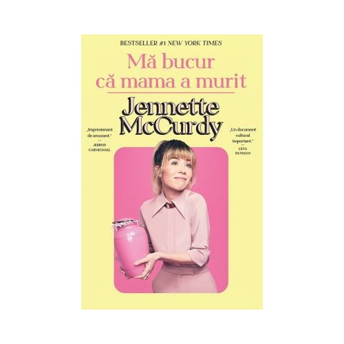 In Ma bucur ca mama a murit, Jennette povesteste toate acestea in amanunt, fara nicio ezitare - la fel cum relateaza ce se intampla atunci cand visul se implineste in cele din urma. Distribuita intr-un nou serial Nickelodeon intitulat iCarly, este impinsa in lumina reflectoarelor. Desi mama e in al noualea cer, trimitandu-le e-mailuri moderatorilor fan cluburilor si tutuindu-se cu paparazzii ("Salut, Gale!"), Jennette este coplesita de anxietate, rusine si ura de sine, care se manifesta prin tulburari de alimentatie, dependenta si o serie de relatii nesanatoase. Aceste probleme nu fac decat sa se agraveze cand, la scurt timp dupa ce preia rolul principal in Sam & Cat, serialul derivat din iCarly, alaturi de Ariana Grande, mama ei moare de cancer. In cele din urma, dupa ce descopera terapia si se lasa de actorie, Jennette isi incepe recuperarea si decide pentru prima oara in viata ei ce isi doreste cu adevarat.
