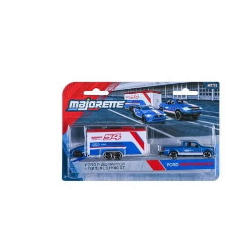 Intra in lumea curselor cu seturile Majorette Transporter, perfecte pentru pasionatii de masini sport si colectii auto in miniatura. Fiecare set include un camion cu remorca si un model de masina detaliat, realizate din metal de calitate, cu elemente mobile pentru un plus de realism. Modelele Porsche, Nissan si alte marci celebre impresioneaza prin design autentic si culori atractive, oferind o experienta de joaca plina de actiune. Recomandate copiilor de peste 3 ani, aceste vehicule sunt ideale atat pentru joaca interactiva, cat si pentru colectionari care apreciaza masinutele premium. Acest pachet include remorca Ford F 150 Raptor si o masinuta Ford Mustang GT.