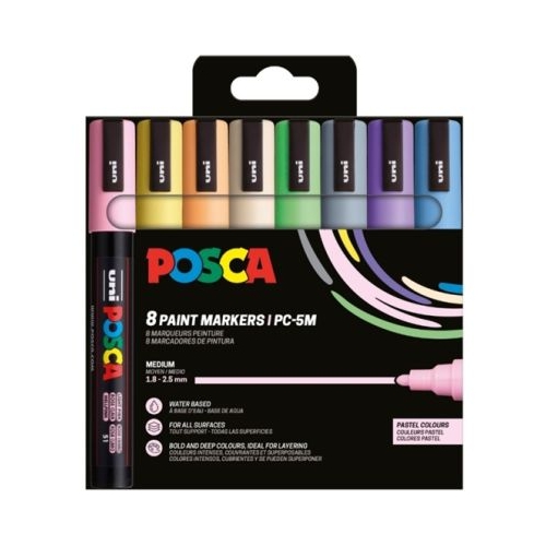 Marker UNI Posca PC-5M varf rotund 1. 8-2. 5mm set 8 culori pastel